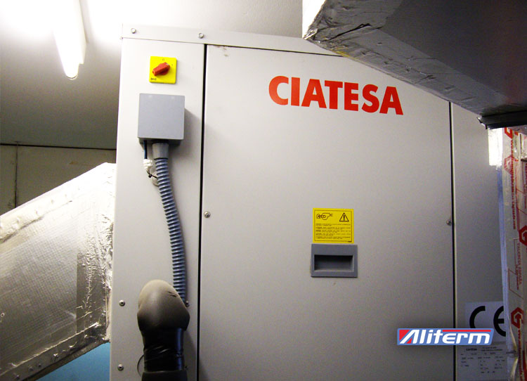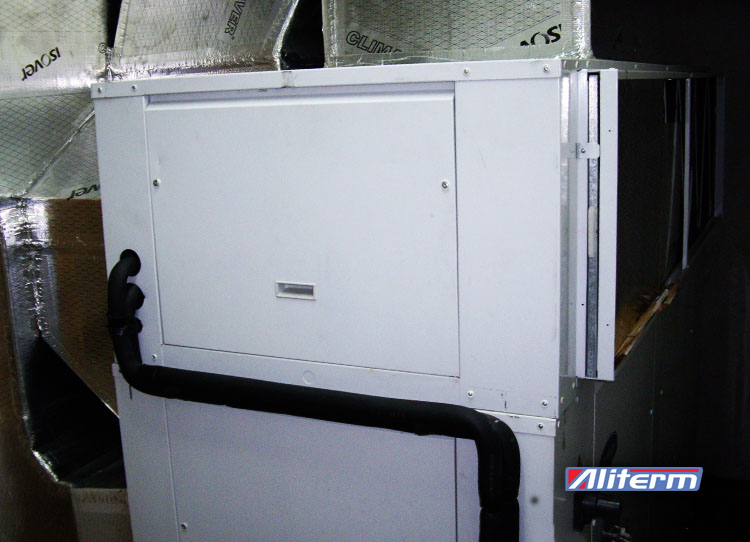 Instalación: Unidad partida 63kw. Conductos descarga en chapa y red de distribución.